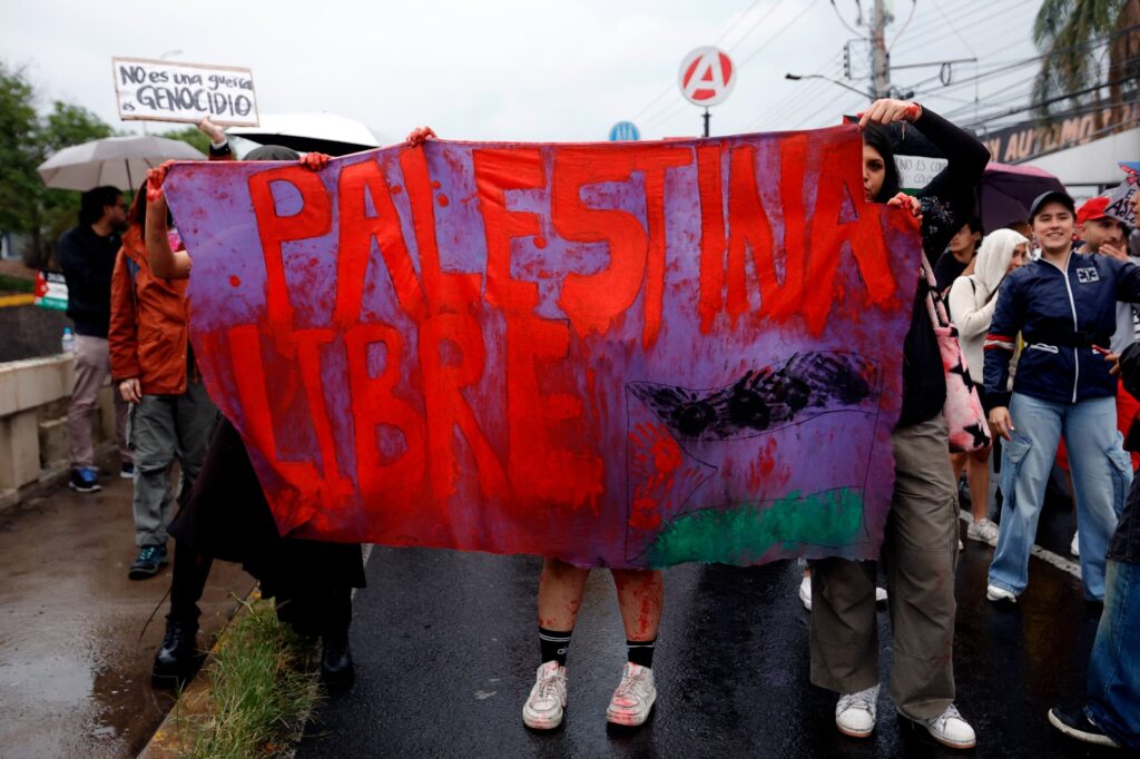 La movilización se realizó de manera simultánea con otras marchas convocadas en distintas ciudades del país y en el extranjero, como parte de una jornada internacional por Palestina.